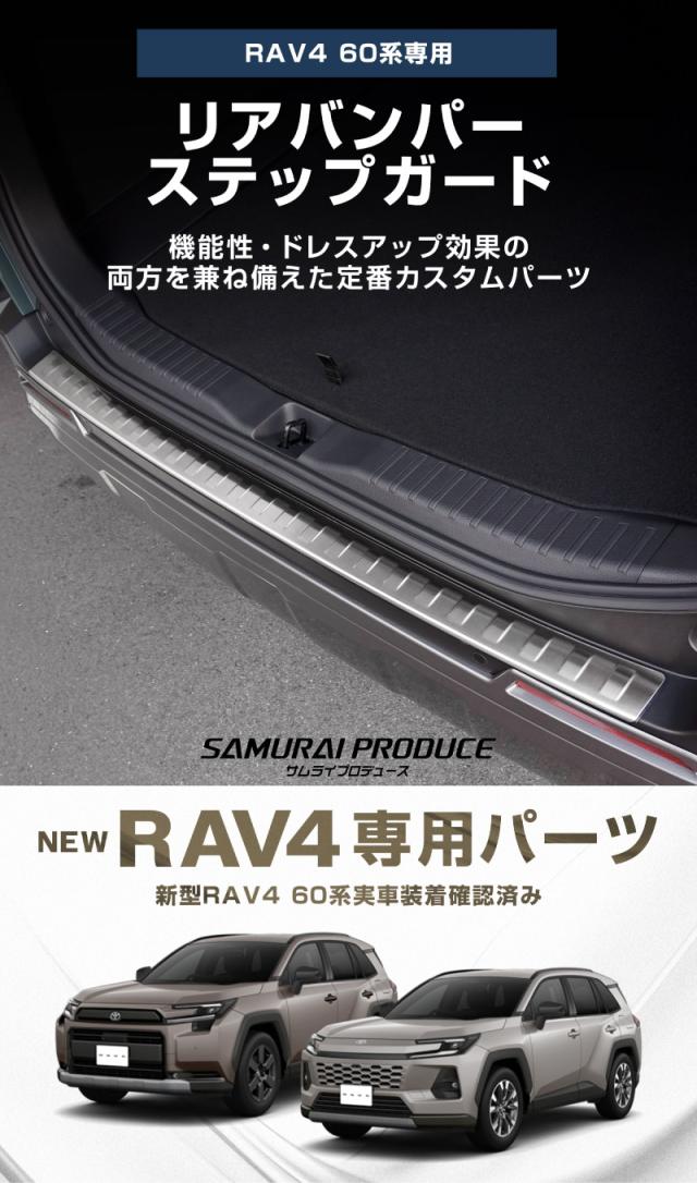 【アウトレット品】新型RAV4 60系 リアバンパーステップガード 1P 車体保護ゴム付き シルバーヘアライン 外装 保護 カスタム パーツ アクセサリー ドレスアップ 社外品 カー用品 オプション ラブ4
