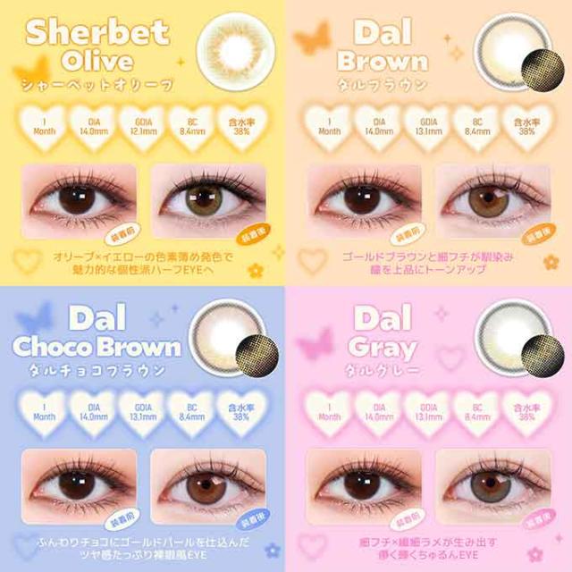 ダルグレー,ダルチョコブラウン,シャーベットヘーゼル,シャーベットグレー,