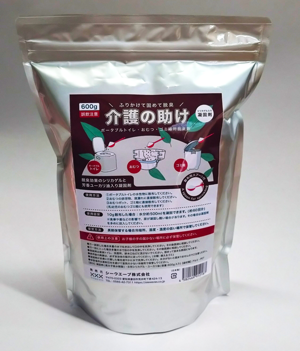【排泄物凝固脱臭処理剤】排泄後散布するだけで瞬間的に凝固して脱臭します。長時間脱臭効果が持続しますので普段消臭スプレーをお使いの方にも一緒に使用して頂くことで介護の臭い対策に効果的です。排泄処理をポータブルトイレの排便袋にしている場合に非常に便利です。ポータブルトイレなどに排泄した後直ぐに固めて臭いをマスキングする処理ができる事で廃棄する家族への負担も減らすことができます。又、オムツポット、ゴミ箱の臭い出し時上部に散布することで上のマスキングと底面に出る水分の凝固もできます。「すべてのシチュエーションに対応した凝固脱臭剤、介護の助けです。(10g用計量スプーン付)35L当たり10g目安で散布してください。1袋600g入り(60回分)【脱臭効果】糞尿集 4大悪臭に効果 シリカゲルが水分の吸着乾燥効果 ( 防災用 としても効果的です)