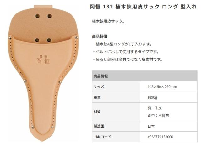 岡恒 No.132 植木鋏用皮サック ロング 型入れ サイズ145×50×290mm 132000 。