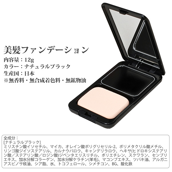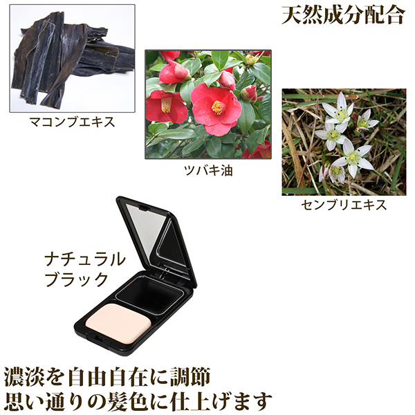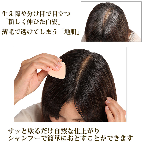 生え際や分け目で目立つ「新しく伸びた白髪」、薄毛で透けてしまう「地肌」などを目立ちにくくする頭髪・頭皮用のファンデーションです。