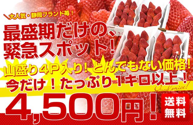 静岡県産 プレミアムいちご 超盛りきらぴ香 G たっぷり2箱 合計1キロ以上(約260g×4入り)計20粒から48粒入り 送料無料 苺 イチゴ【発送時期:カート内に記載しております】