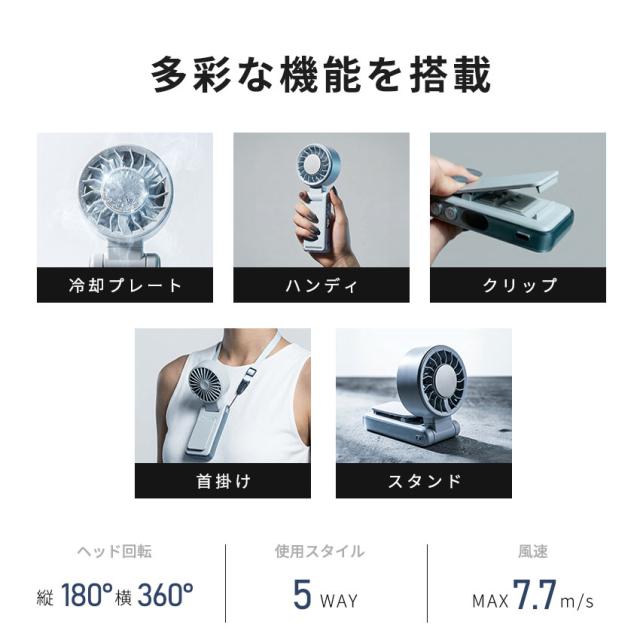 【2026新作】Lafuture ハンディファン 5WAY 冷却プレート 多機能 クリップファン 首掛け扇風機 クリップ扇風機 日傘 ベビーカー リュック 小型扇風機 卓上扇風機 携帯扇風機 充電式 軽量 大風量 ストラップ 静音 扇風機 暑さ対策 熱中症対策