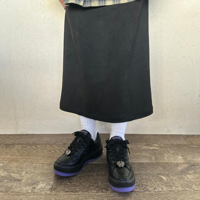 WEAPONをベースに、ANNA SUIのアイコンである蝶や薔薇、イメージカラーを取り入れたガーリー感のあるデザイン。 E.V.A.とラバーを組み合わせた、厚底ながらも軽量なアウトソールを採用。