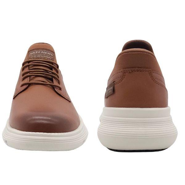 快適さとスタイリッシュな履き心地が楽しめるSKECHERS HANDS FREE SLIP-INS WORKスリップレジスタント:ガルザ。独自のHEEL PILLOWを採用したオックスフォードセーフティ スリップオンシューズ。滑らかなレザーと人工皮革のアッパーに固定ストレッチシューレース、SKECHERS AIR-COOLED MEMORY FOAM(スケッチャーズ エアクールドメモリーフォーム)インソール、フレックスグルーブ付きの防滑トラクションアウトソールを備えています。