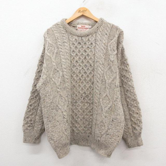 古着 長袖 アラン フィッシャーマン ケーブル セーター メンズ 90年代 90s ウール クルーネック アイルランド製 ベージュ他 25dec29