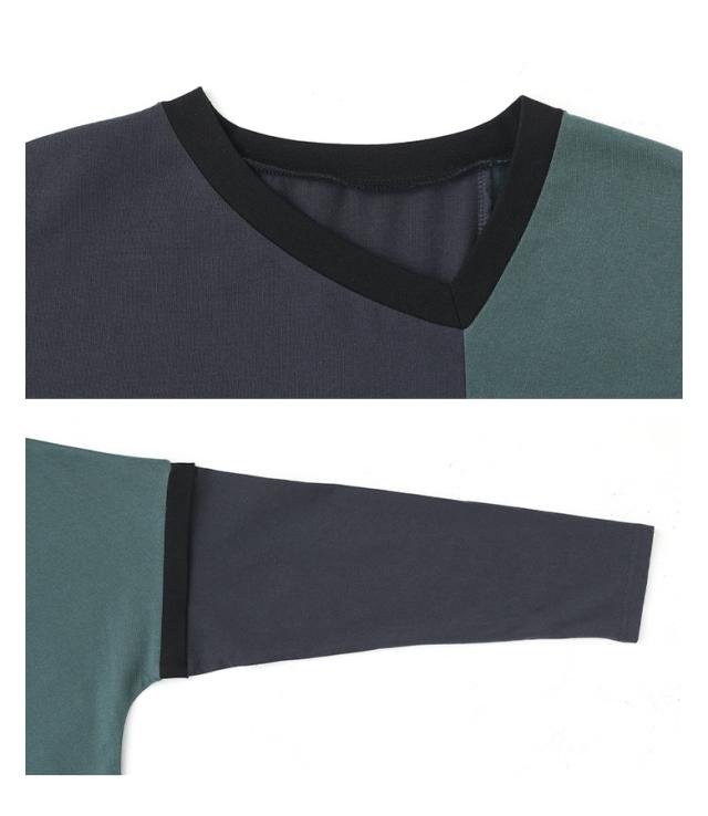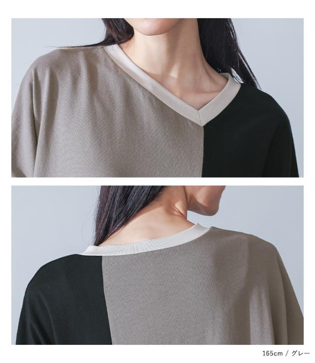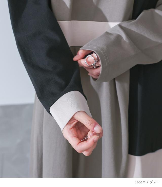 1,000円オフ4日0時迄 <春新作>『配色カットソーワンピース』【メール便不可】【20】[ワンピース 長袖 レディース ドレス ロングワンピース カットソー シフォン Vネック 配色 アシンメトリー アシメ 綿100% ゆったり 春 秋]