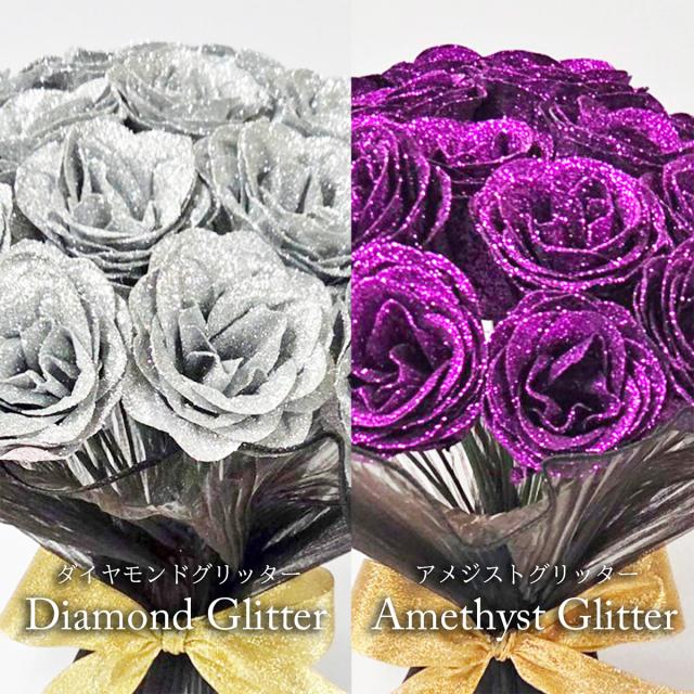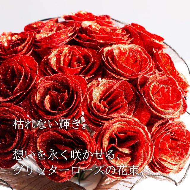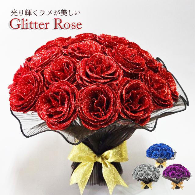 ラメがきらめく グリッターローズ 花束 キラキラ お花 バラ 薔薇 自立可能 造花 記念日 母の日 誕生日 プロポーズ 結婚式 結婚祝い 退職祝い お見舞い 送別会 発表会 花 ブーケ プレゼント ギフト 枯れないお花 GR-101