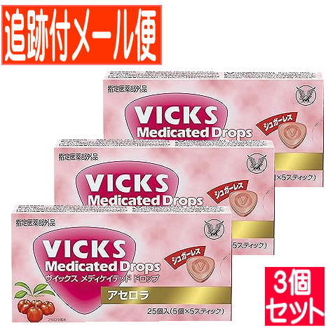 【3個セット】【指定医薬部外品】ヴィックス メディケイテッド シュガーレスアセロラ 25個【メール便送料無料/3個セット】