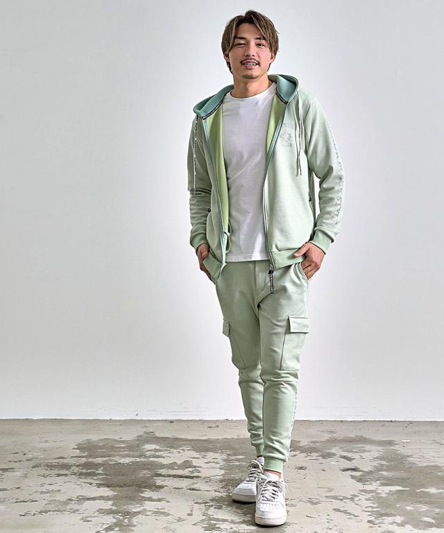 単品使いはもちろん、同素材のパーカーとのセットアップで統一感のあるスタイルも楽しめます。