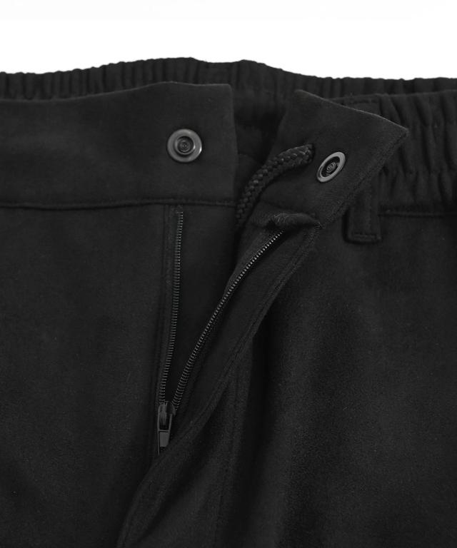 滑らかなフェイクスウェード素材を使用した、高級感漂うジョガーパンツ。