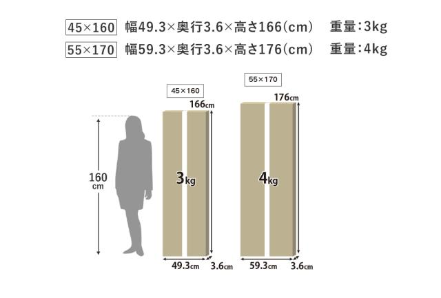 本商品は30×90cmに加え、150cm・160cm・170cmの全4サイズをご用意しております。設置場所の広さや使用目的に合わせて選べるため、ワンルームや寝室、リビング、ウォークインクローゼットなど、さまざまな空間に対応可能です。全身をしっかり映したい方や、壁掛けで使用したい方にも適したサイズをお選びいただけます。新生活を始める方から、用途や設置場所にこだわりたい方まで、幅広いニーズに応えるサイズ展開です。
