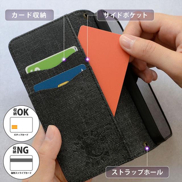 滑りにくく手触りの良いサフィアーノ調の生地を使用し、傷や指紋が目立ちにくい仕上がりで、大きく入った型押しのデザインが特徴です。