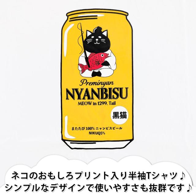 ★メール便送料無料★ おもしろ Tシャツ メンズ 半袖 12625015C ネコ ビール パロディ 猫 グッズ