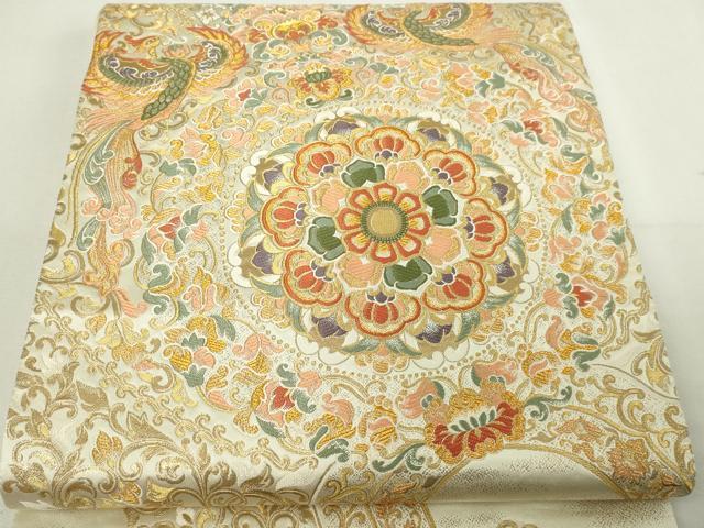 平和屋本店▼六通柄袋帯 鳳凰正倉院花文 本金箔 正絹 逸品 DABC0495sf