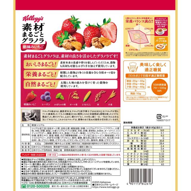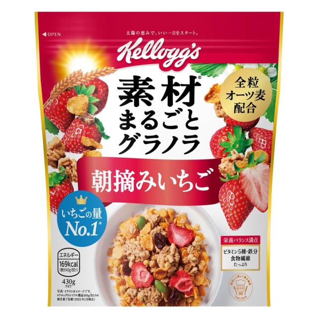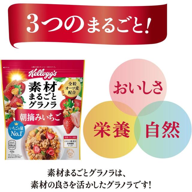 ケロッグ 素材まるごとグラノラ 朝摘みいちご 430g 1袋 2袋 6袋 12袋 1ケース 素材 まるごと グラノラ 朝摘み いちご オーツ麦 トウモロコシ 米 小麦 ケロッグごはん 人気 朝食 昼食 間食 夜食 食物繊維 バランス オーツ麦 serial granola かぼちゃの種 ヨーグレット ケーキ