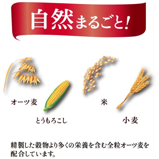シリアル加工品(全粒オーツ麦、全粒小麦、植物油脂、砂糖、シリアルパフ(コーンフラワー、小麦粉、米粉、砂糖、食塩)、小麦シリアルパフ(小麦粉、米粉、砂糖、麦芽粉)、水あめ、オーツパフ、ココナッツパウダー、糖蜜、麦芽エキス、食塩)(ベルギー製造)、シリアルフレーク(コーングリッツ、砂糖、麦芽エキス、食塩、蜂蜜、ぶどう糖果糖液糖)、レーズン加工品(レーズン、植物油脂)、ドライストロベリー、かぼちゃの種/グリセリン、香料、重曹、酸化防止剤(ビタミンE)、乳化剤(大豆由来)、鉄、ピロリン酸鉄、ビタミンB2、ビタミンB6、ビタミンB1、酸味料、葉酸、ビタミンD