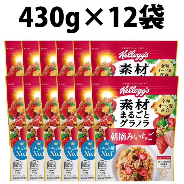 ケロッグ 素材まるごとグラノラ 朝摘みいちご 430g 1袋 2袋 6袋 12袋 1ケース 素材 まるごと グラノラ 朝摘み いちご オーツ麦 トウモロコシ 米 小麦 ケロッグごはん 人気 朝食 昼食 間食 夜食 食物繊維 バランス オーツ麦 serial granola かぼちゃの種 ヨーグレット ケーキ