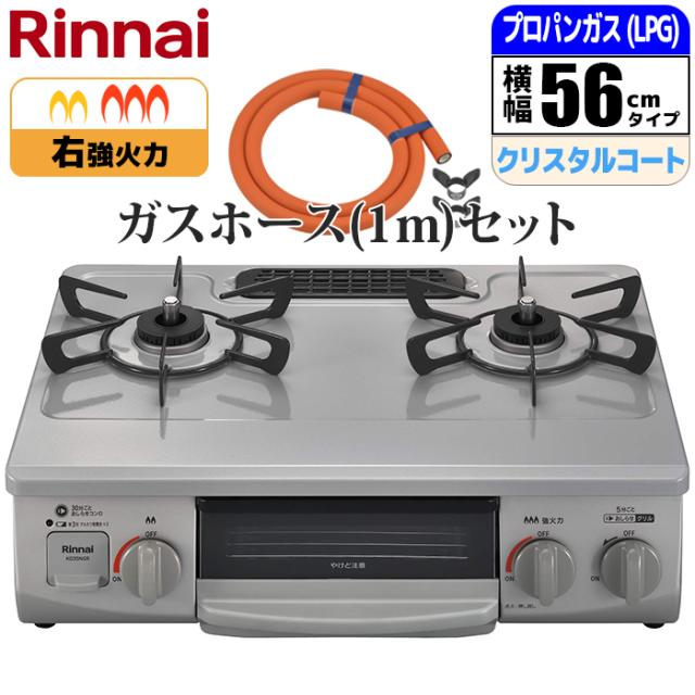 ガステーブル 幅56cm 右強火力 水無し片面焼グリル スカイグレー プロパン(LPG)用 ガスホース(1m)セット リンナイ KG35NGRR-LPG_GHSET【送料無料】 (KG35NGRRLPG_GHSET)