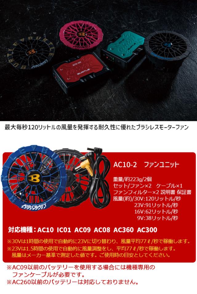 限定カラー バートル 2026年 新型 ファンユニット AC10-2 エアークラフト 空調 作業服 ファンケーブル・ファンフィルター付 BURTLE AIR CRAFT ファン付きウェア 作業着