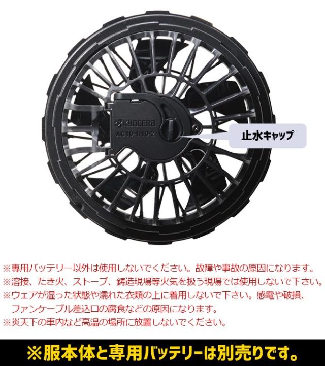 ●ファン重量:223g(2個) ●風量:30V=120L/秒、23V=91L/秒、13V=56L/秒、16V=62L/秒、9V=38L/秒 ※30V(風量)は、1時間の使用で自動的に23Vに切り替わり、平均77L/秒で稼働します。 ※23V(風量)は、1.5時間の使用で自動的に風量を調整し、平均77L/秒で稼働します。 ※AC260(2021年発売)以前のバッテリーは対応しておりません。 ※風量はメーカー(KYOCERA)基準で測定した値です。着用条件、環境の違いに応じて稼働時間は異なります。 |