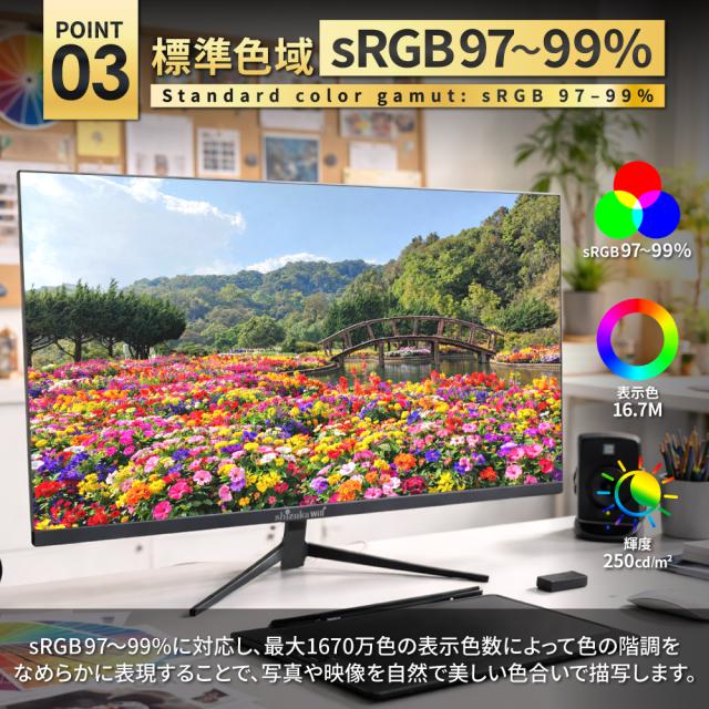 液晶モニター ゲーミングモニター PCモニター パソコンモニター デスクトップPC デスクモニター ディスプレイ 液晶ディスプレイ ゲーミングディスプレイ ゲームモニター ゲームディスプレイ 23.8インチ FHD フルHD 1920×1080 100Hz対応 高解像度 滑らか表示 IPSパネル 広視野角 sRGB sRGB97% sRGB99% 薄型 DisplayPort HDMI USB Type-C 映像入力 VESA VESA対応 VESAマウント 75×75 PS5 PS4 Nintendo Switch Xbox ノートパソコン Windows Mac 在宅ワーク テレワーク リモートワーク サブモニター マルチディスプレイ FPS eスポーツ アクションゲーム 動画視聴 ゲーム用 作業用 仕事用 学習用 オンライン会議 zoom テレビ会議 デザイン 制作 クリエイター 写真編集 動画編集 プレゼント ギフト 誕生日 クリスマス 新生活 お祝い 父の日 母の日 実用的