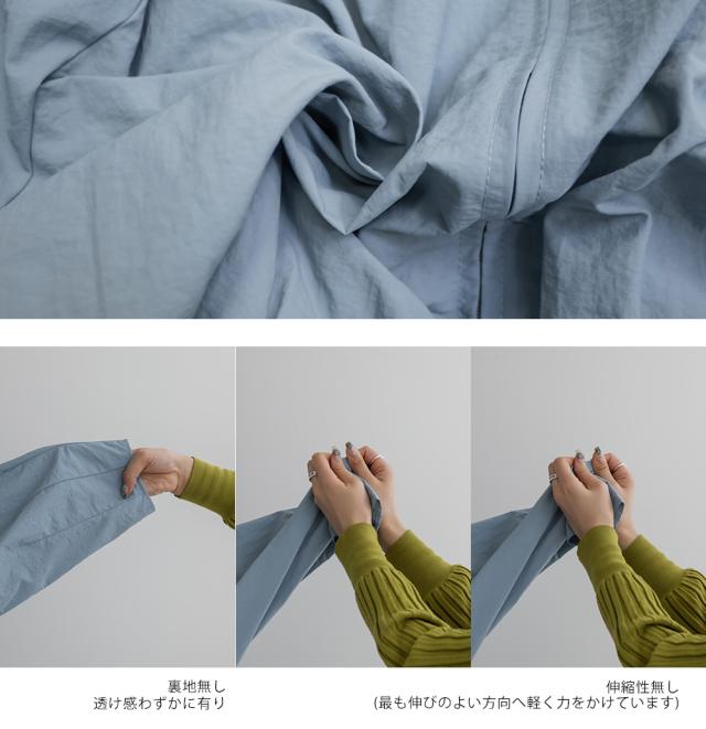 | 裏地無し、透け感わずかに有り、伸縮性無し |