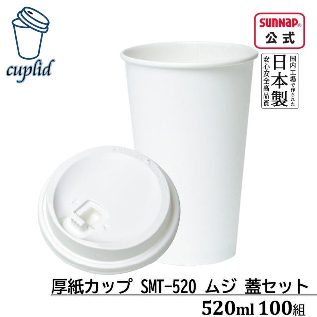 cuplid 厚紙カップ 白無地 520ml リフトアップリッド 白 100組【 ふた付き紙コップ 蓋付き 蓋セット テイクアウト 持ち帰り カフェ 2Lサイズ 】