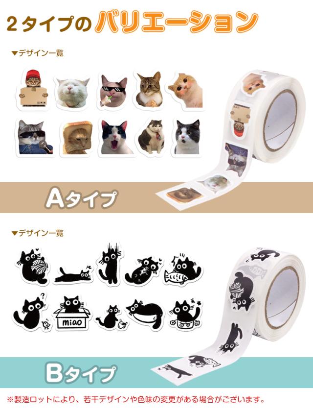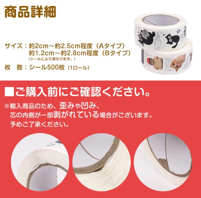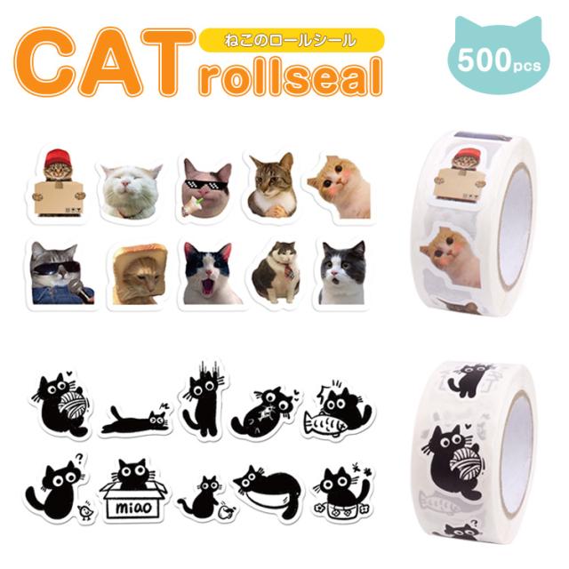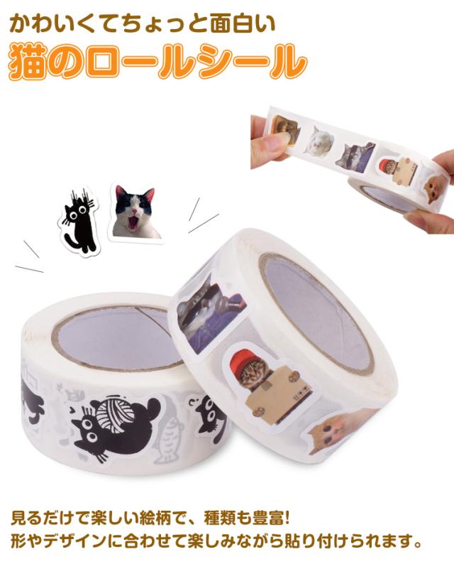猫シール ロールシール 500枚 シール 猫グッズ 猫雑貨 黒猫 おもしろ かわいい アニマル 動物 猫 ねこ キャット ラッピング用品 文房具 ステーショナリー