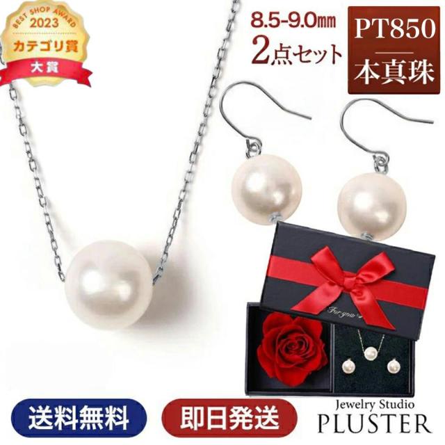 ネックレス パールネックレス パール 一粒 PT850 ピアス パールピアス2点 セット スルーネックレス あこや真珠 レディース 真珠 本真珠 宇和島 冠婚葬祭 フォーマル 8.5mm-9mm 結婚式 入学式 卒業式 人気 二十歳 限定ケース付 ギフト プレゼント 誕生日 ホワイトデー