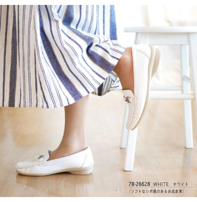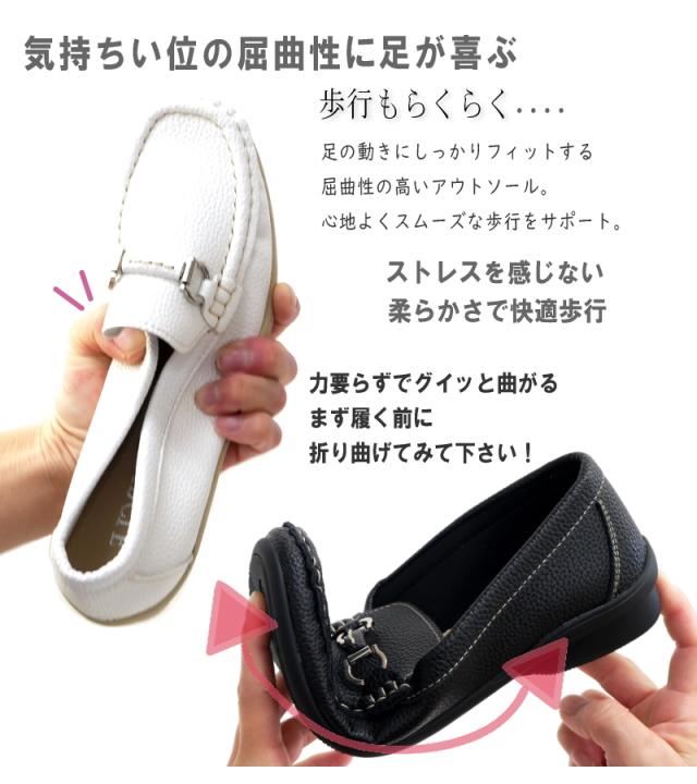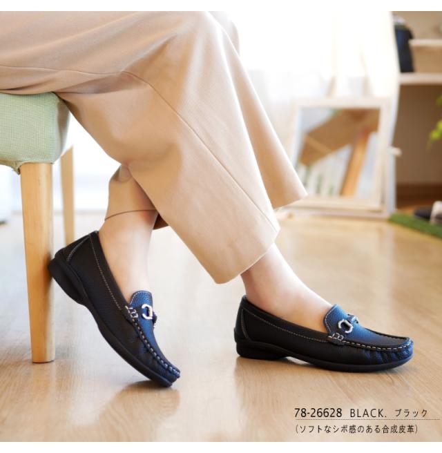 モカシンシューズ ビット 靴 レディース 3E スリッポン ローファー フラットソール スクエア 軽量 柔らかい ソフト 歩きやすい 履きやすい 楽ちん 屈曲