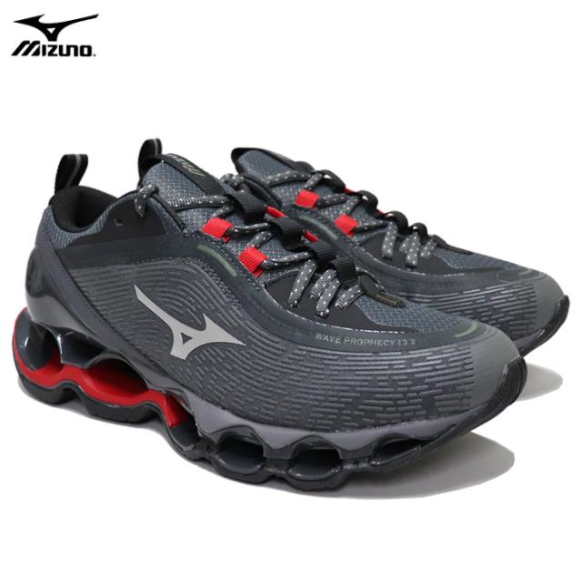 ミズノ スニーカー メンズ ランニングシューズ ダークグレー×シルバー×レッド MIZUNO WAVE PROPHECY 13.2