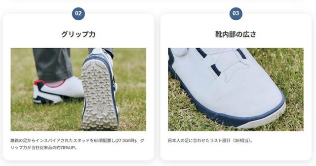 グリップには、ブランドのアイコンでもある雄鶏の足からインスパイアを得た、三角形状の突起を全面に配置することで 前モデル対比78%(デサント社比)グリップ力が向上した仕様です。