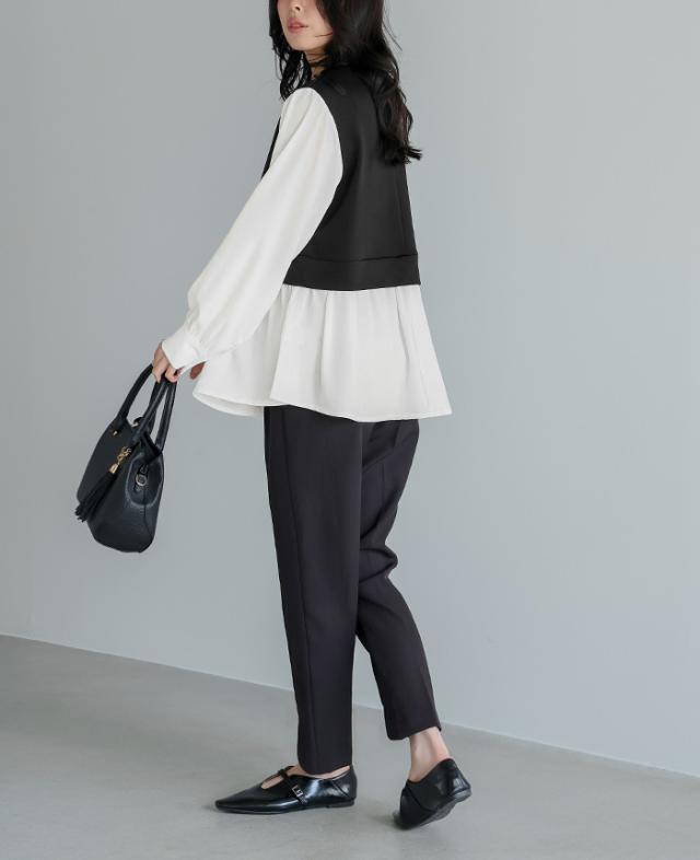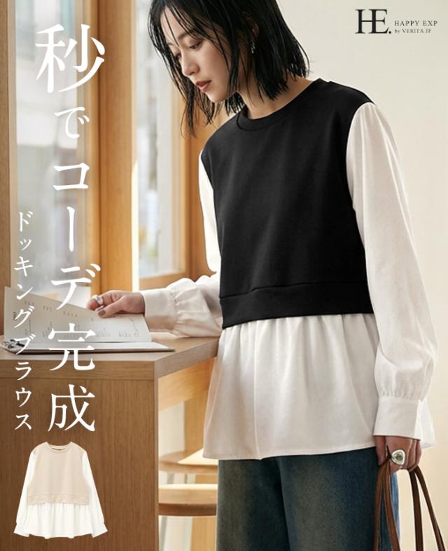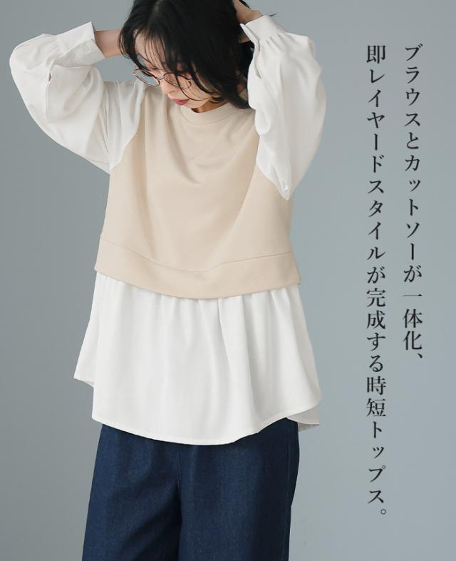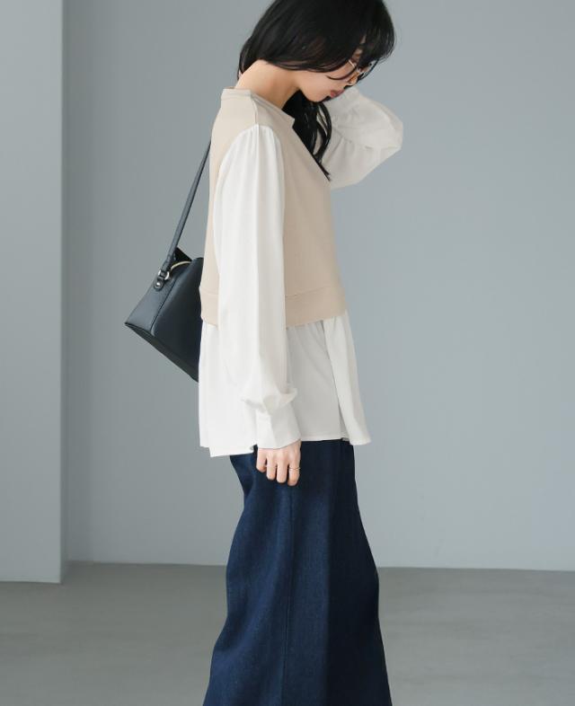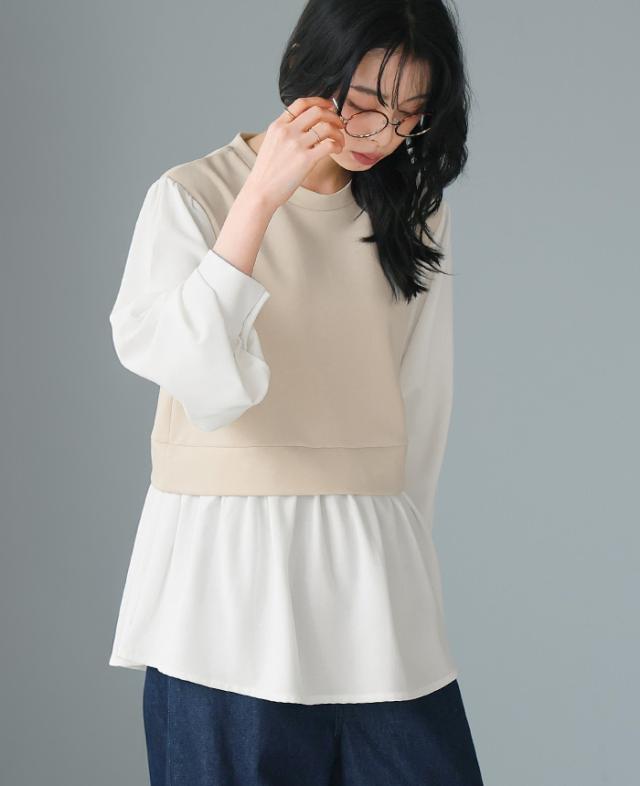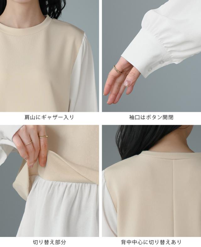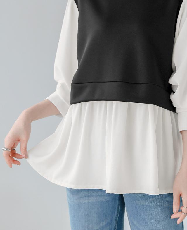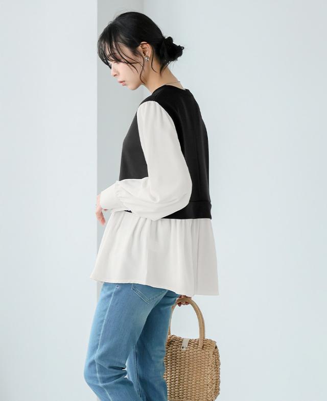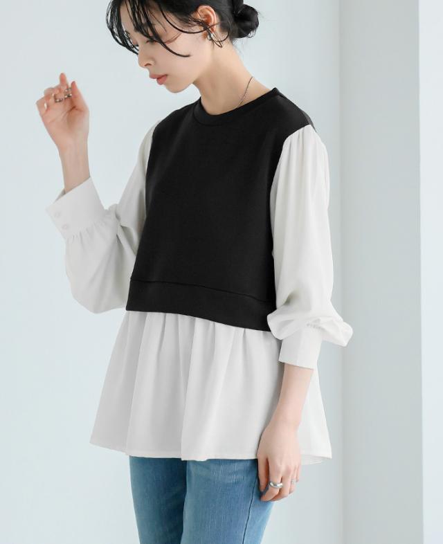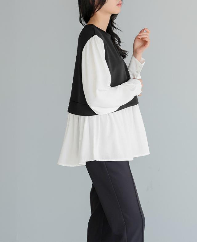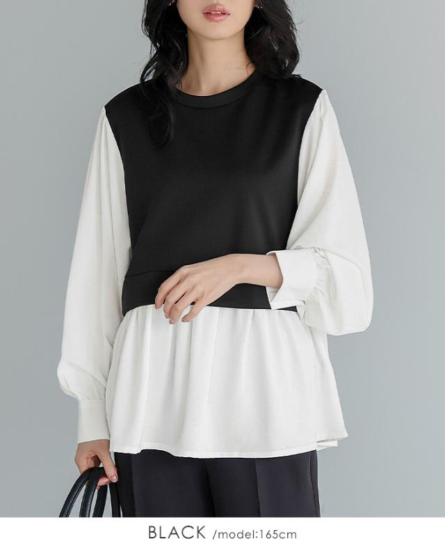 [新作限定P10%×メール便で送料無料]配色ドッキングブラウス★-【メール便1点まで】[M便 1/1]