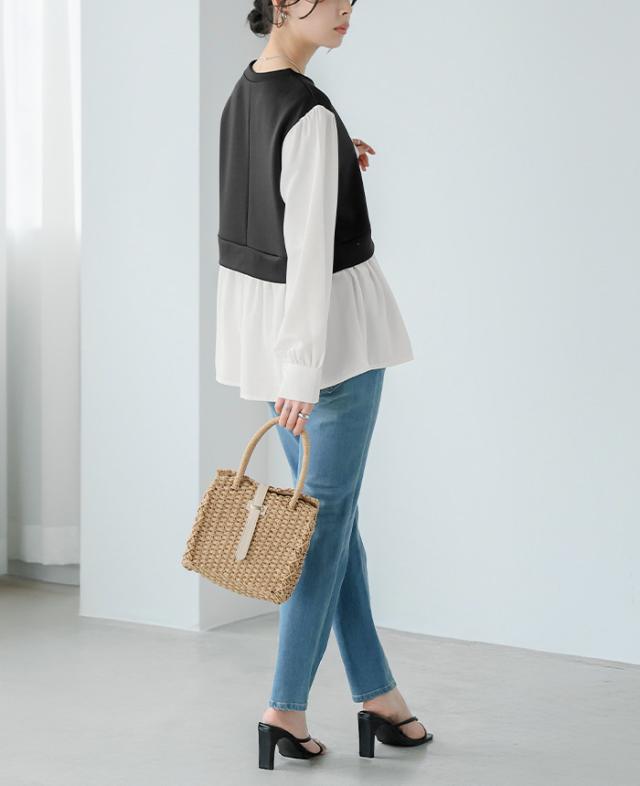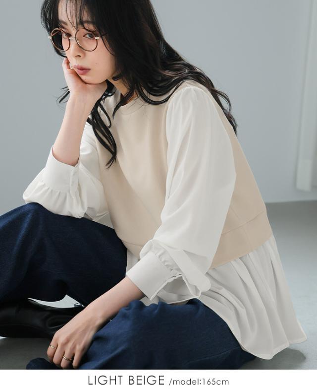 ![]() ![]() ![]() ![]() ![]() ![]() ![]() ![]() ![]() ![]() ![]() ![]() ![]() ![]() ![]() ![]() ![]() ![]() ![]() ![]() ![]() ![]() ■Comment まるでベストとブラウスを重ねたような、ドッキングのデザイン。 配色なので、一枚でスタイリングが完成します。 ふっくらとした袖と、切り替え下にギャザーを入れた女性らしいシルエット。 ブラウスの生地は落ち感があり、柔らかな表情を見せてくれます。 オン・オフ問わず活躍してくれるアイテムです。 ■Size(cm) 【F】着丈66 バスト98 肩幅40 袖丈59 袖口24 天幅21 裾周り158 ■Fabric 【本体】ポリエスエル95% ポリウレタン5% 【別布部分】ポリエステル100% 生地感: 【本体】さらっとした、伸縮性のある生地 【別布部分】さらっとした、少しシボ感のある生地 裏地:なし 伸縮性:身頃はあり 透け感:淡色は若干あり 生地の厚さ:普通 ■Weight 約299g ■Color ライトベージュ(薄いベージュ×オフ白) ブラック(標準的な黒×オフ白) なし ■Country of origin 中国 ■洗濯表示
