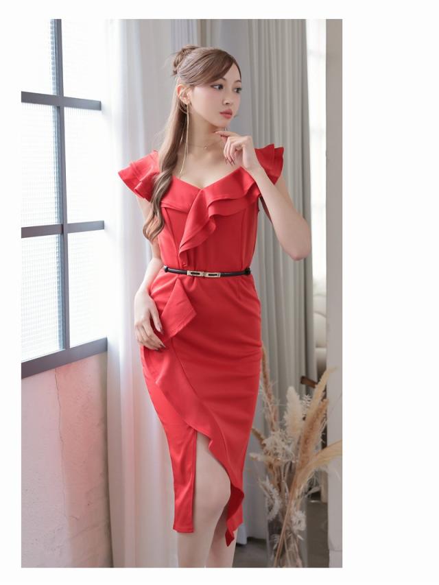 キャバワンピース DaysPiece フリル 二重フリルデザイン ウエスト細見せ カシュクールデザイン ストレッチ キャバ ワ