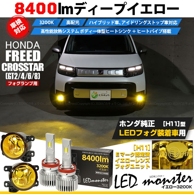ホンダ フリード クロスター (GT2/4/6/8) 対応 LED MONSTER L8400 H11 イエロー ガラスレンズ フォグランプ ユニット 8400lm イエロー 3200K H1144-M-5