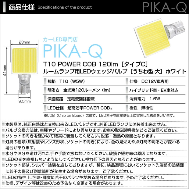 COB(シーオービー)の実装技術を採用したルームランプ専用LEDバルブです。明るさ、実用性、耐久性にとことんこだわりぬいたピカキュウが自信を持ってリリースする製品です。