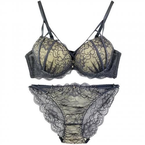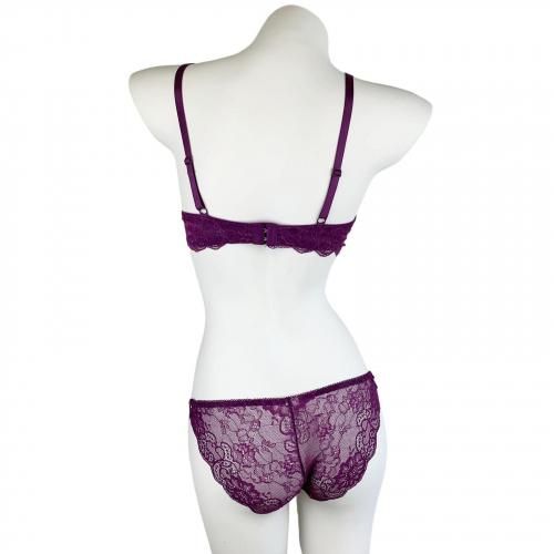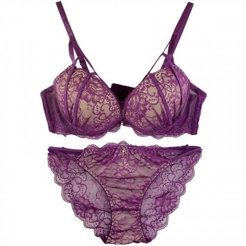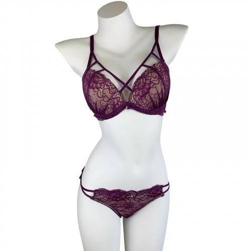 ブラジャー ショーツ セット ブラセット ランジェリー 下着 カップ クロス ストリング モールドカップ 自然 繊細 大人 大胆 ヌーディ 総レース 透け感 レース 谷間 グレー パープル