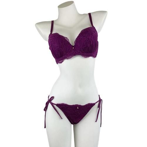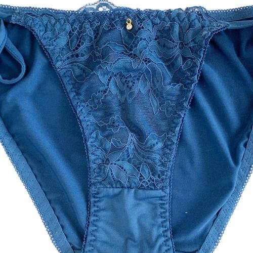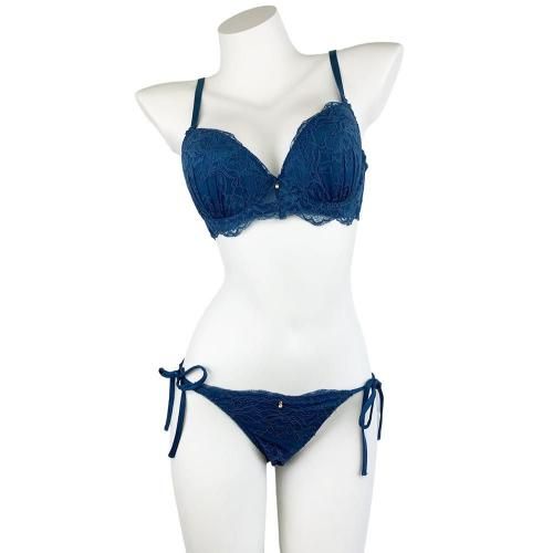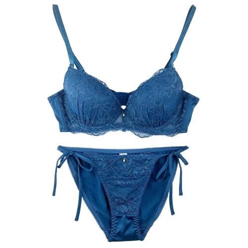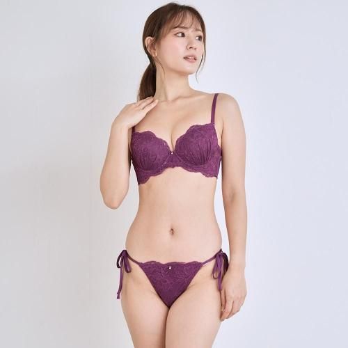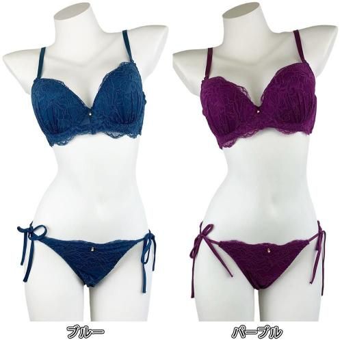 ブラジャー ショーツ セット ブラセット ランジェリー 下着 安定感 カップ 刺激的 シルエット ストリング ストレッチ バストライン モールドカップ ストレスフリー 脇高 花柄 自然 大人 紐パン レース ブルー パープル
