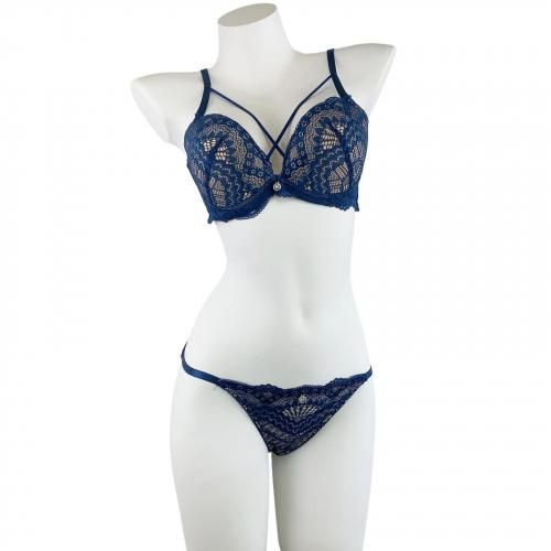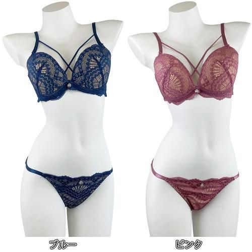 ブラジャー ショーツ セット ブラセット ランジェリー 下着 カップ クロス ストリング モールドカップ 脇高 ホールド 華やか 快適 大人 総レース レース 谷間 魅せる ブルー ピンク