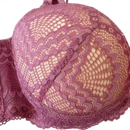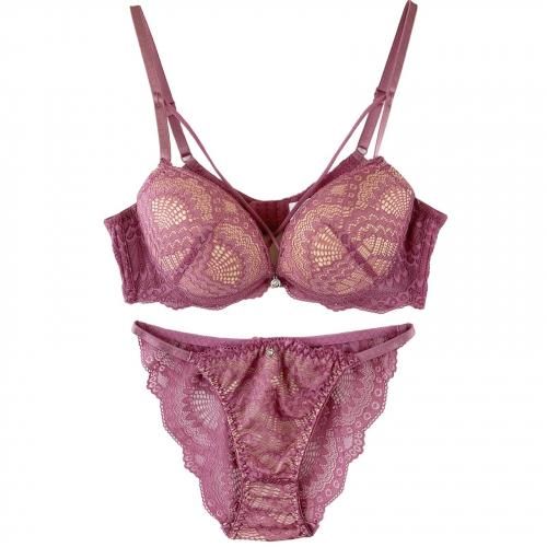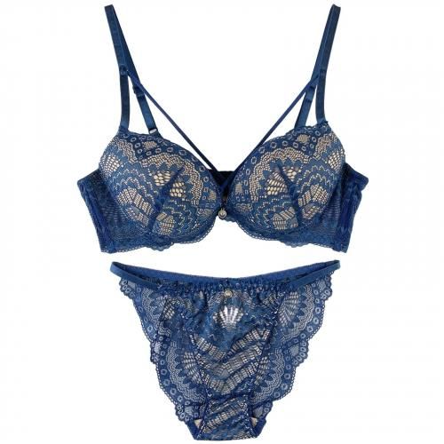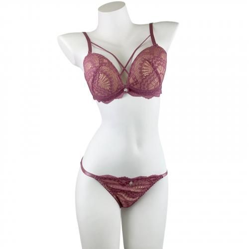 クロスストリングが魅せる美谷間×総レースの気品漂う大人のブラ・ショーツセット(ブラセット)。