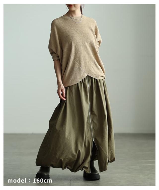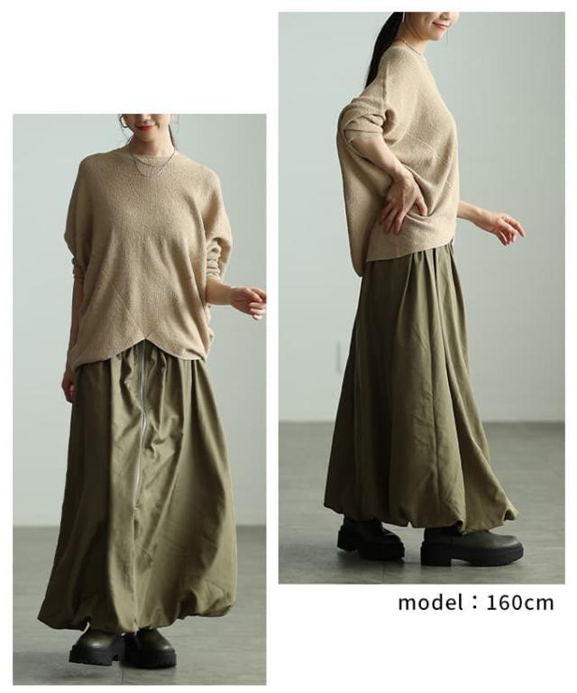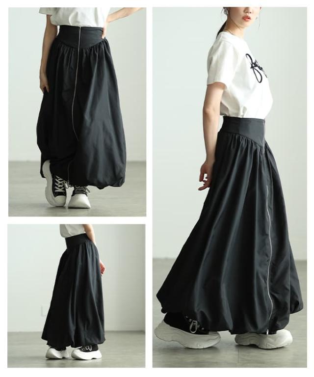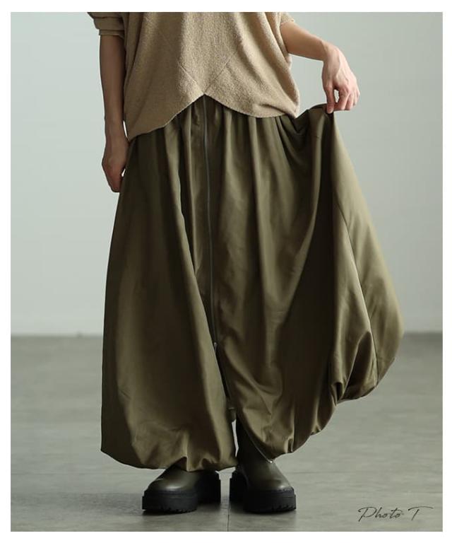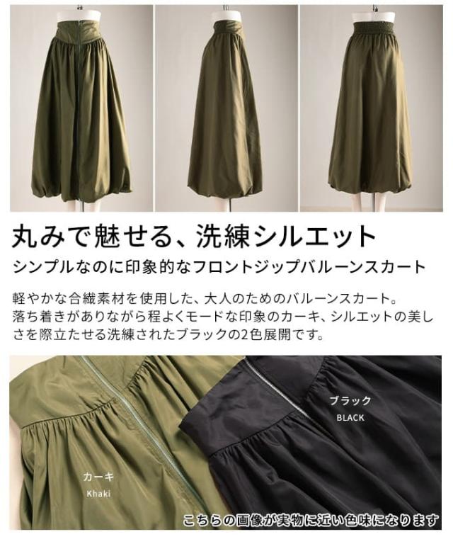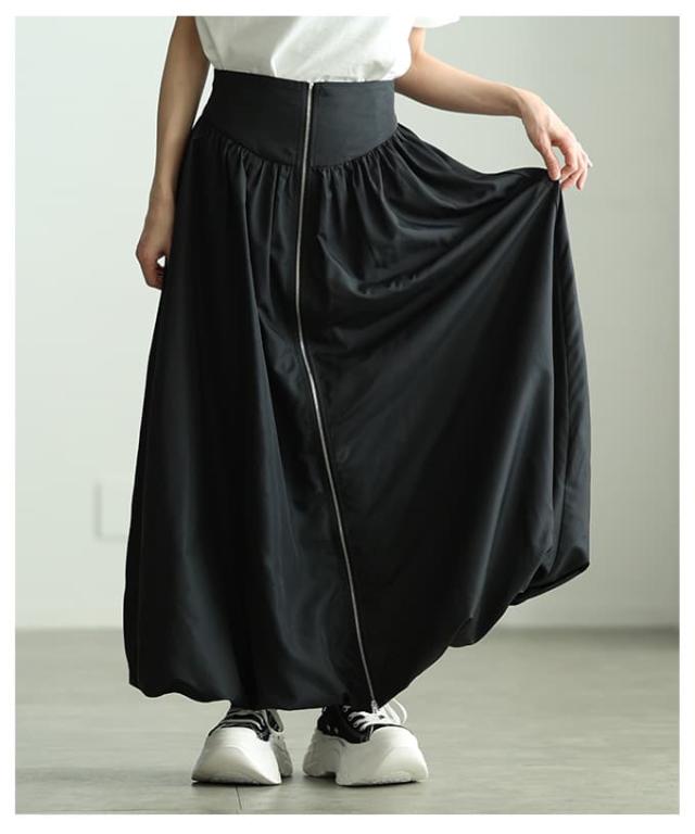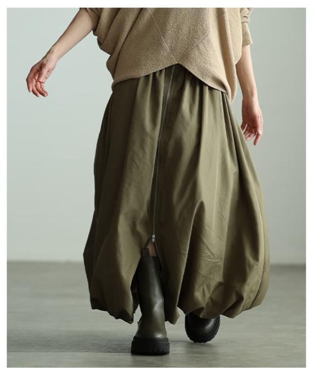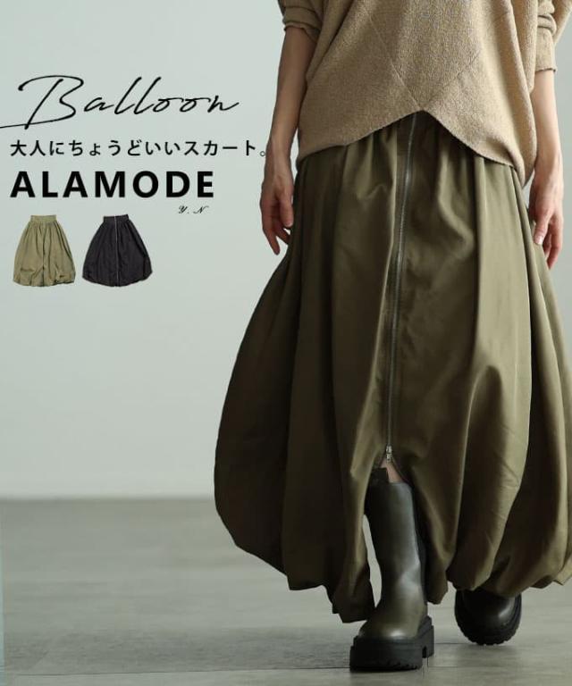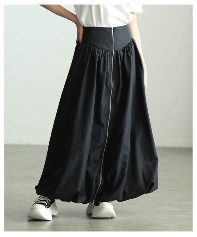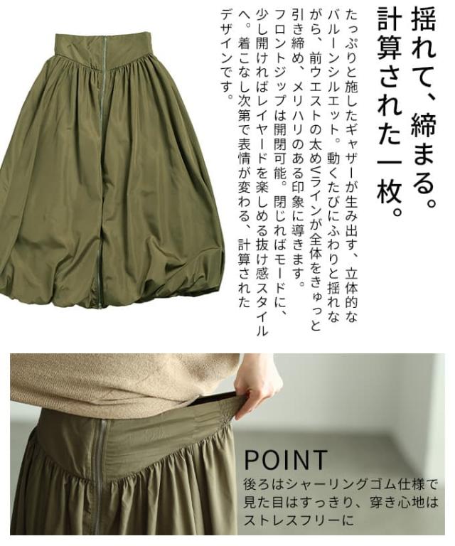 冬新作 シンプルなのに印象的なフロントジップバルーンスカート レディース スカート ロング ジップデザイン シャーリング カジュアル 春 夏 秋 冬 春服 夏服 秋服 冬服 30代 40代 50代 60代 アラモード alamode otona 大人 cawaii 可愛い 洋服 かわいい服 aldt-634s3332