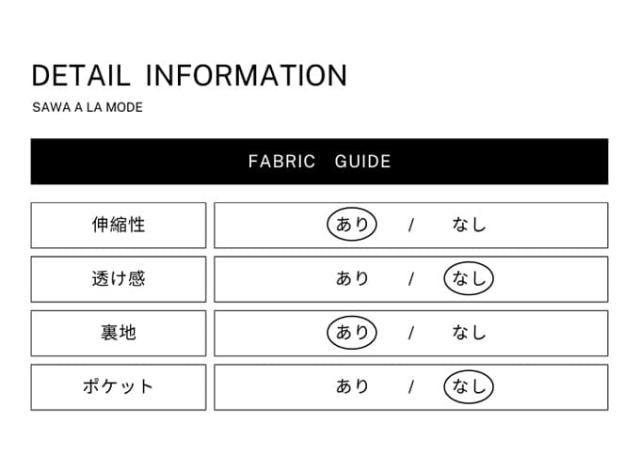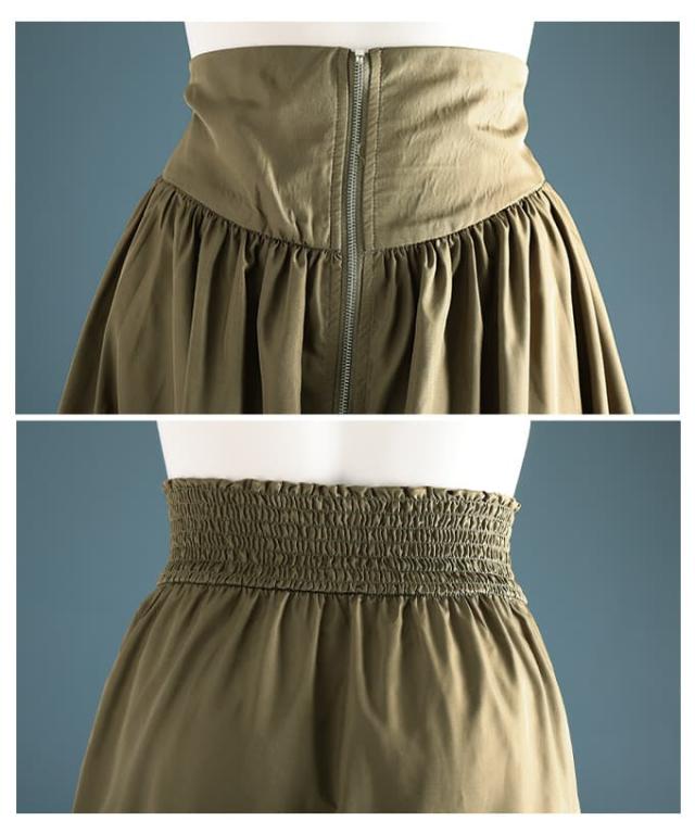 特徴: ハイウエスト ウエストゴム シャーリング フロントジッパー