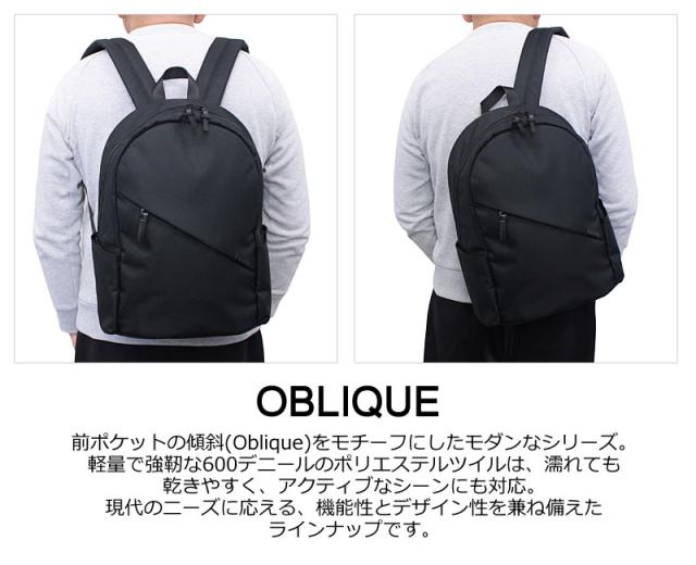 前ポケットの傾斜(Oblique)をモチーフにしたモダンなシリーズ。