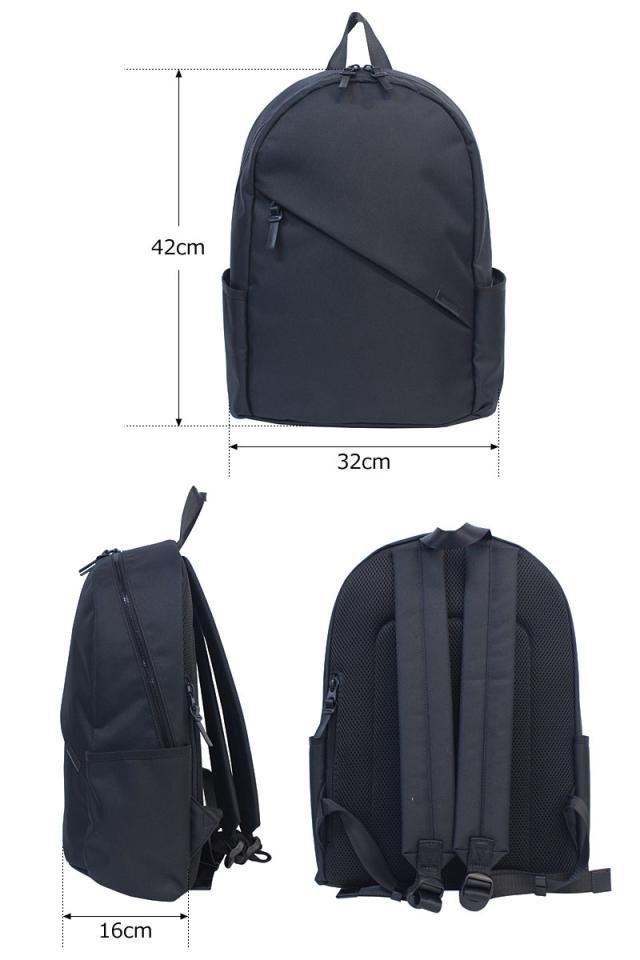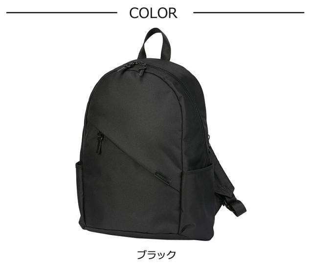 斜めポケットがポイントのオーバルトップ形のデイパック。