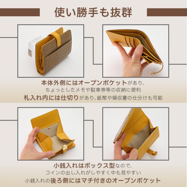 マットクロコダイル革と牛革のコンビネーション配色、金具のアクセントがおしゃれな、使いやすい二つ折り財布単品使いもできるカードケース付き