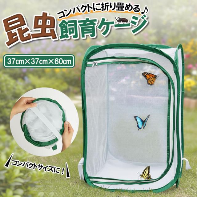 送料無料 昆虫 飼育ケージ メッシュ 蝶 トンボ 爬虫類 育成 繁殖 ケージ コンパクト 折りたたみ 通気性 網かご シルクワーム 観察 ケース 昆虫採集 ポップアップ ネット 園芸 鉢植え 保護 カバー 防虫ネット 37cm 60cm