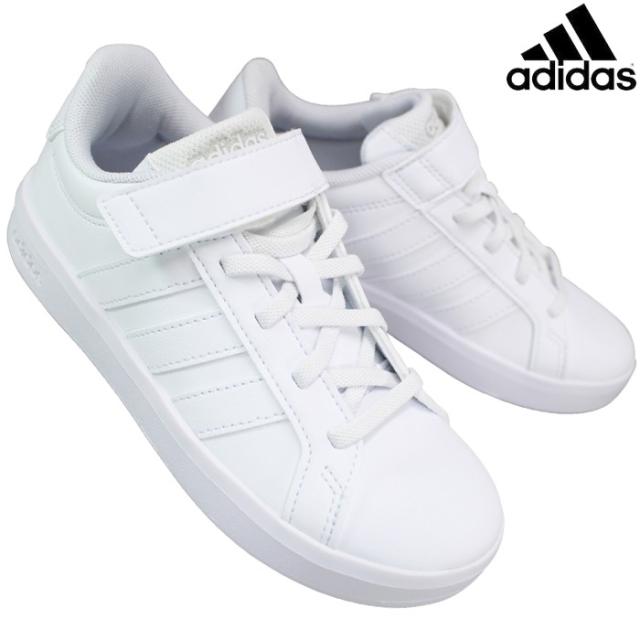 アディダス adidas スニーカー HP3532 グランドコート3.0 EL C ホワイト 18cm〜21.5cm キッズ ジュニア スニーカー シューズ 運動靴 子供靴 通学靴 合成皮革 マジックテープ 面ファスナー GRANDCOURT 3.0 EL C アディダスHP3532