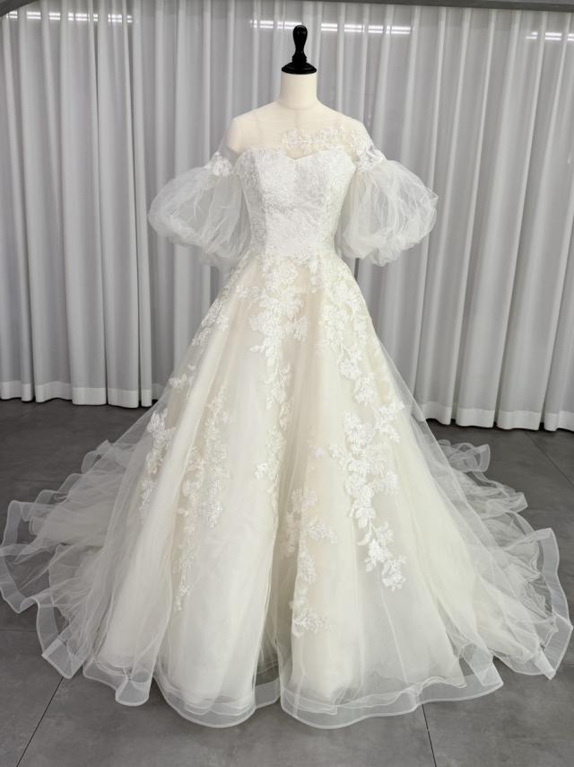 キヨコハタ KIYOKO HATA プリンセスライン ウェディングドレス ホワイト 白 チュール 刺繍 ロングトレーン